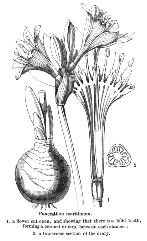 Taxonomy. Subclass Monocotyledonae. Superorder Liliiflorae; Asparagales. Species about 800. Genera about 60; Amaryllis, Apodolirion, Boophane, Brunsvigia, Calostemma, Carpolyza, Chlidanthus, Clivia, Crinum, Cryptostephanus, Cyrtanthus, Eucharis, Eurycles, Eustephia, Galanthus, Gethyllis, Grittonia, Haemanthus, Hessea, Hippeastrum, Hymenocallis, Leucojum, Lycoris, Narcissus, Nerine, Pancratium, Phaedranassa, Rauhia, Rhodophiala, Scadoxus, Sprekelia, Stenomesson, Sternbergia, Strumaria, Ungernia, Vagaria, Zephyranthes (Dahlgren et al. 1985).