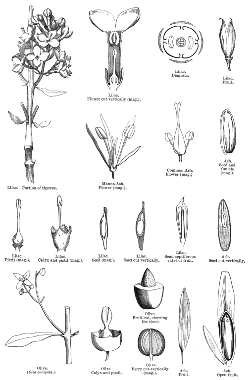Including Bolivariaceae Griseb., Forstier(ac)eae Endl., Fraxin(ac)eae S.F. Gray, Iasmin(ac)eae Link, Jasmin(ac)eae Juss., Syringaceae Horan.