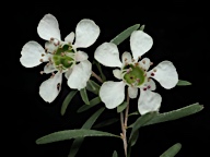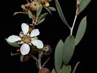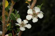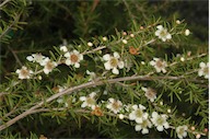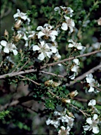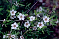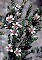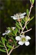 | Leptospermum scoparium | | Taken at. c. 0.5 km from Bass Highway along Rocky Cape Road, TAS | | Photographer. Fagg, M. | | a 37156 |