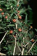 | Leptospermum | | Taken at. S of Barakula State Forest, c. 16.5 km N of Warrego Highway on Auburn Road at creek crossing, QLD | | Photographer. Schmidt-Lebuhn, A.N. | | dig 42294 |