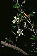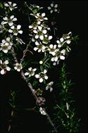 | Leptospermum scoparium | | Taken at. Near Mt Tongariro National Park, NEW ZEALAND | | Photographer. Wrigley, J.W. | | a 41748 |