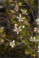 | Leptospermum divaricatum | | Taken at. Cocoparra National Park, road to Mount Bingar, about 1 km from summit, NSW | | Photographer. Fagg, M. | | dig 55399 |
