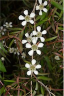 | Leptospermum | | Taken at. S of Barakula State Forest, c. 16.5 km N of Warrego Highway on Auburn Road at creek crossing, QLD | | Photographer. Schmidt-Lebuhn, A.N. | | dig 42293 |