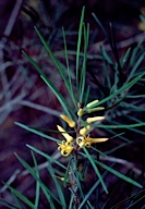 | Persoonia teretifolia | | Taken at. 37 km from Hopetoun along road to Ravensthorpe, WA | | Photographer. Fagg, M. | | a 36119 |